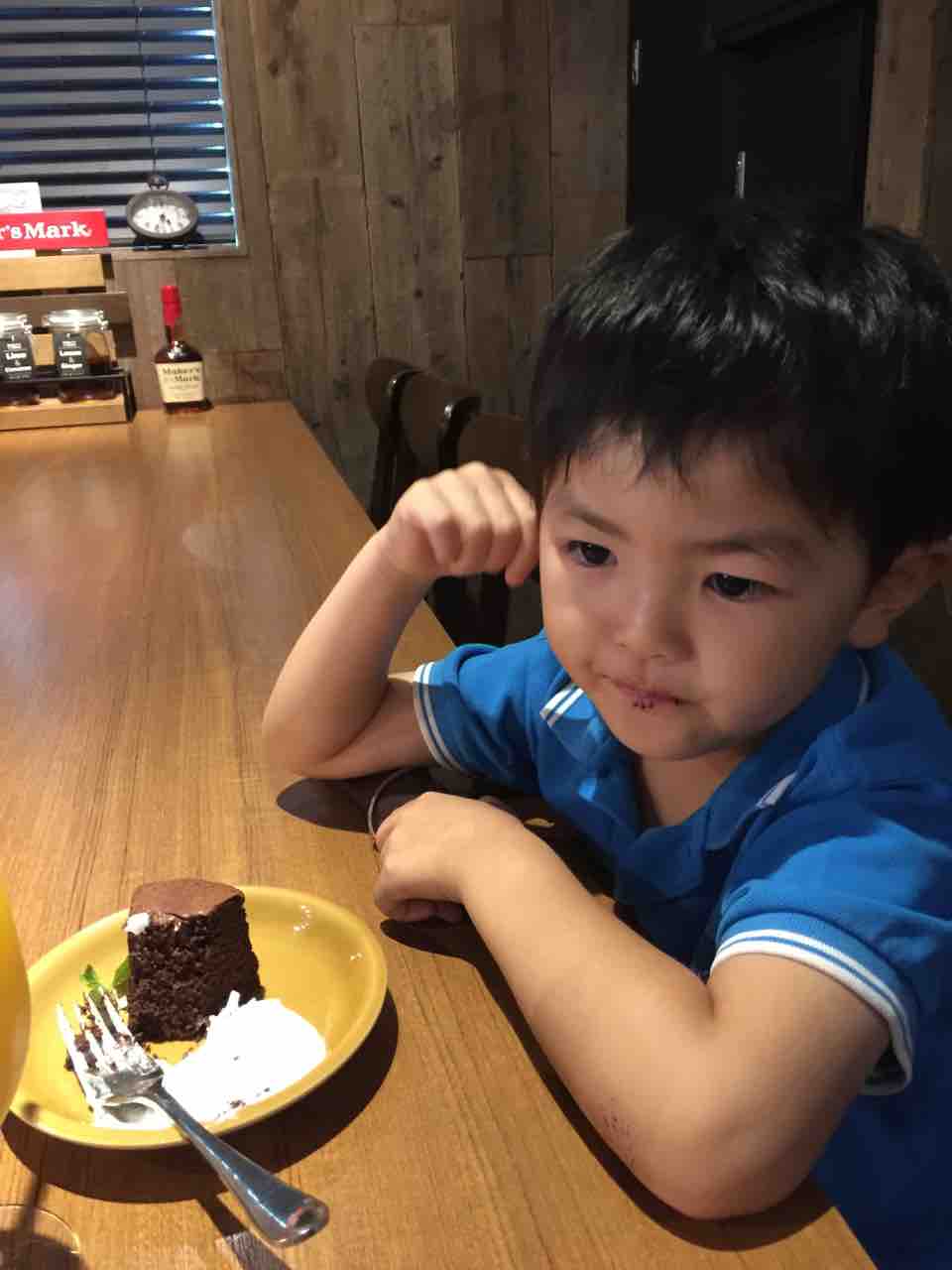 ピアノからソロバンに向かう途中、「チョコレートケーキが食べたい!」という悠喜。