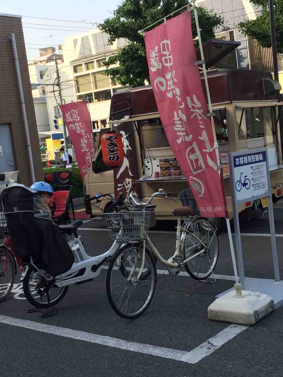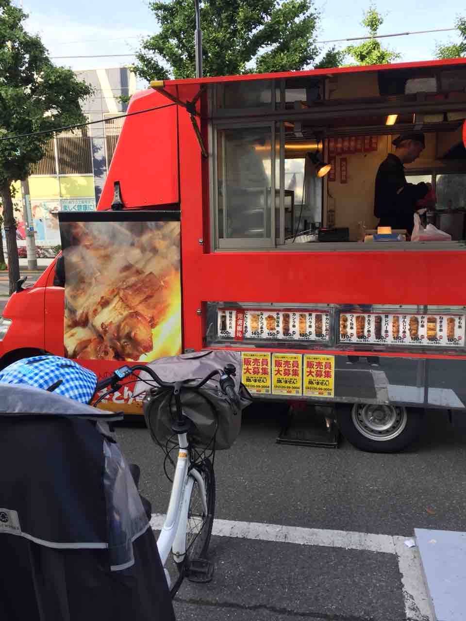プールからソロバン教室に移動する途中のスーパーの駐車場に悠喜お気に入りの焼き鳥屋さんがやってきてました。