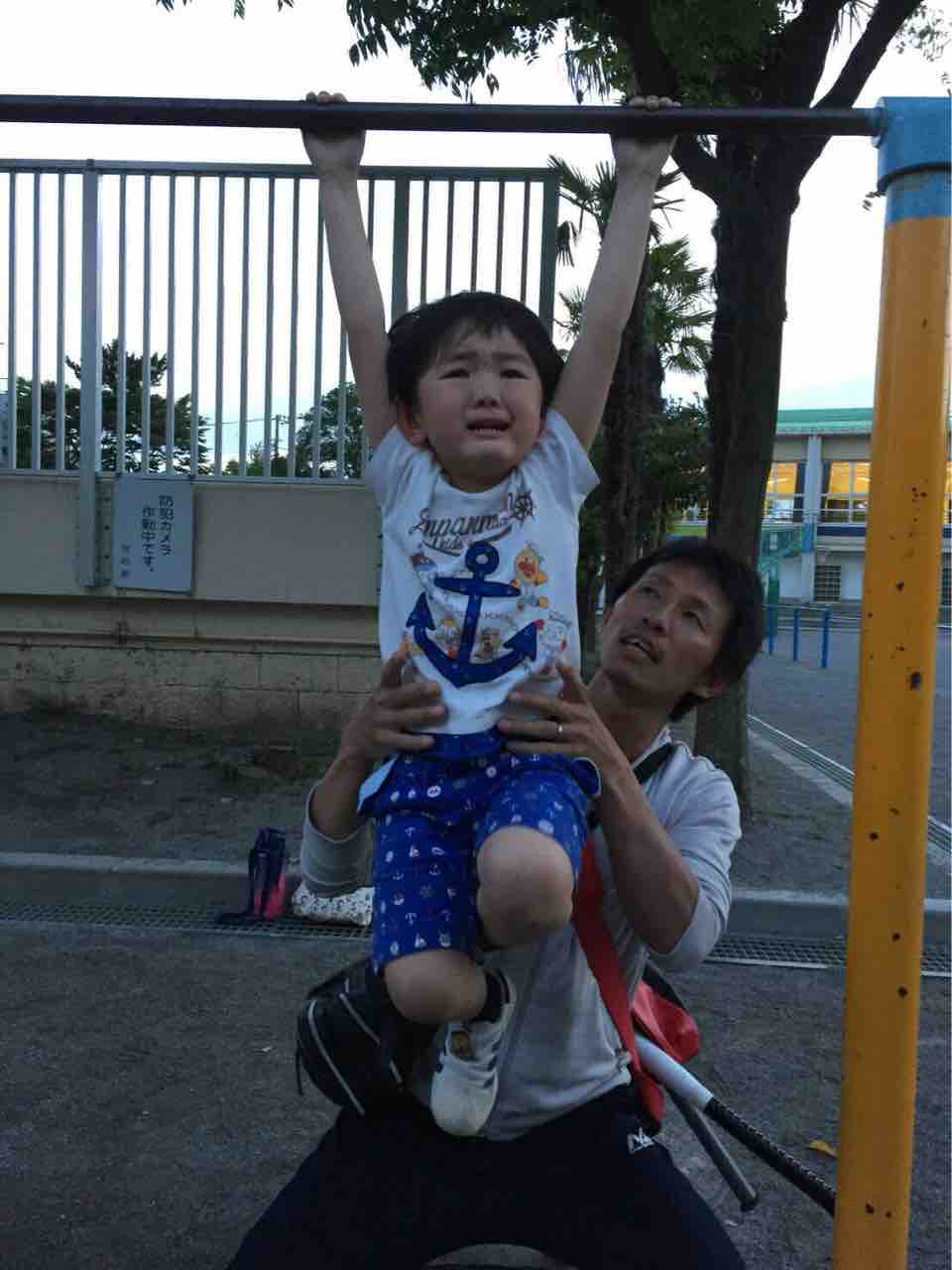 先生は悠喜の握力を褒めてくれましたが、高さのある鉄棒から手を離すのが恐怖の方が勝っていたのだと思います (⌒-⌒; )