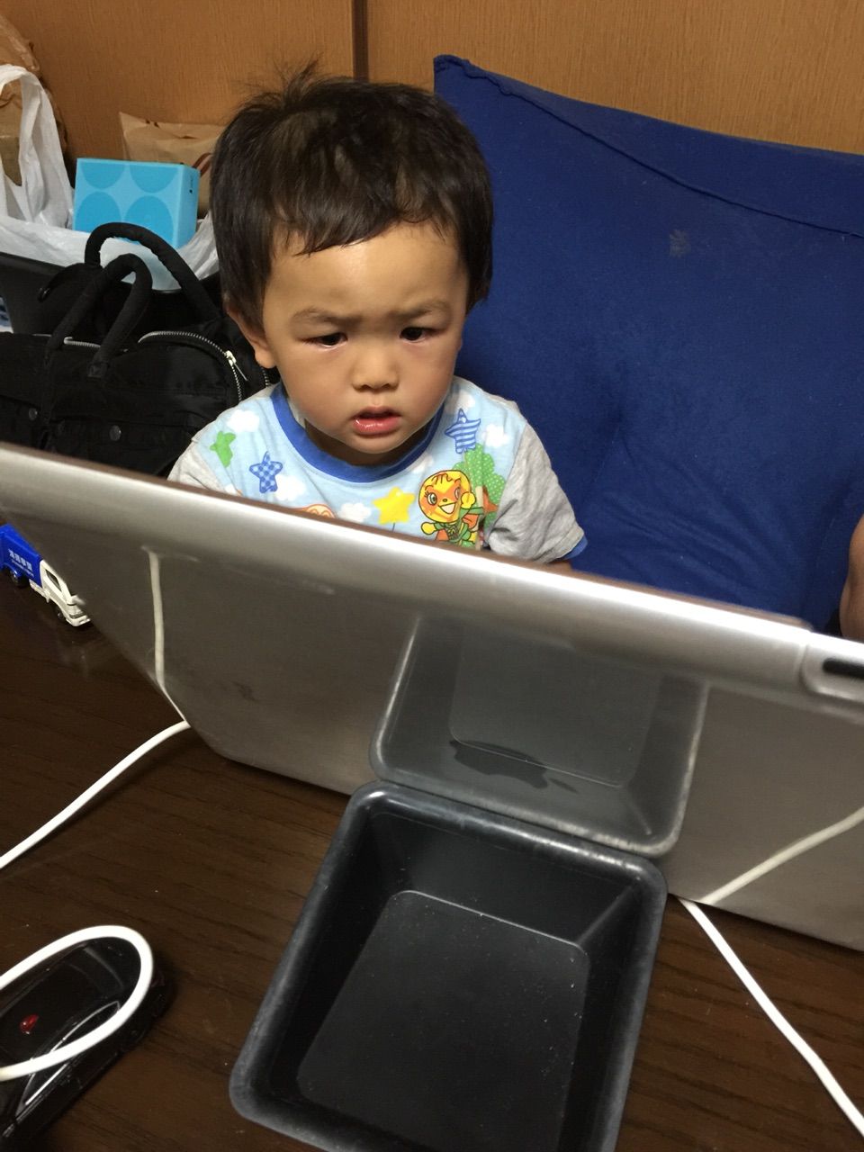 寝る前に少しだけアンパンマンを見せると超真剣な顔してました。。。