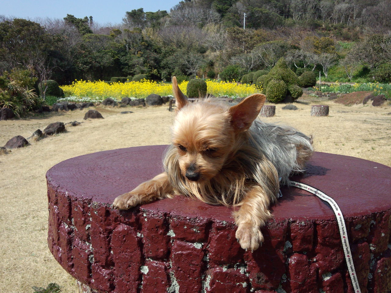 爪木碕で、遊び疲れて一休みしている写真。
