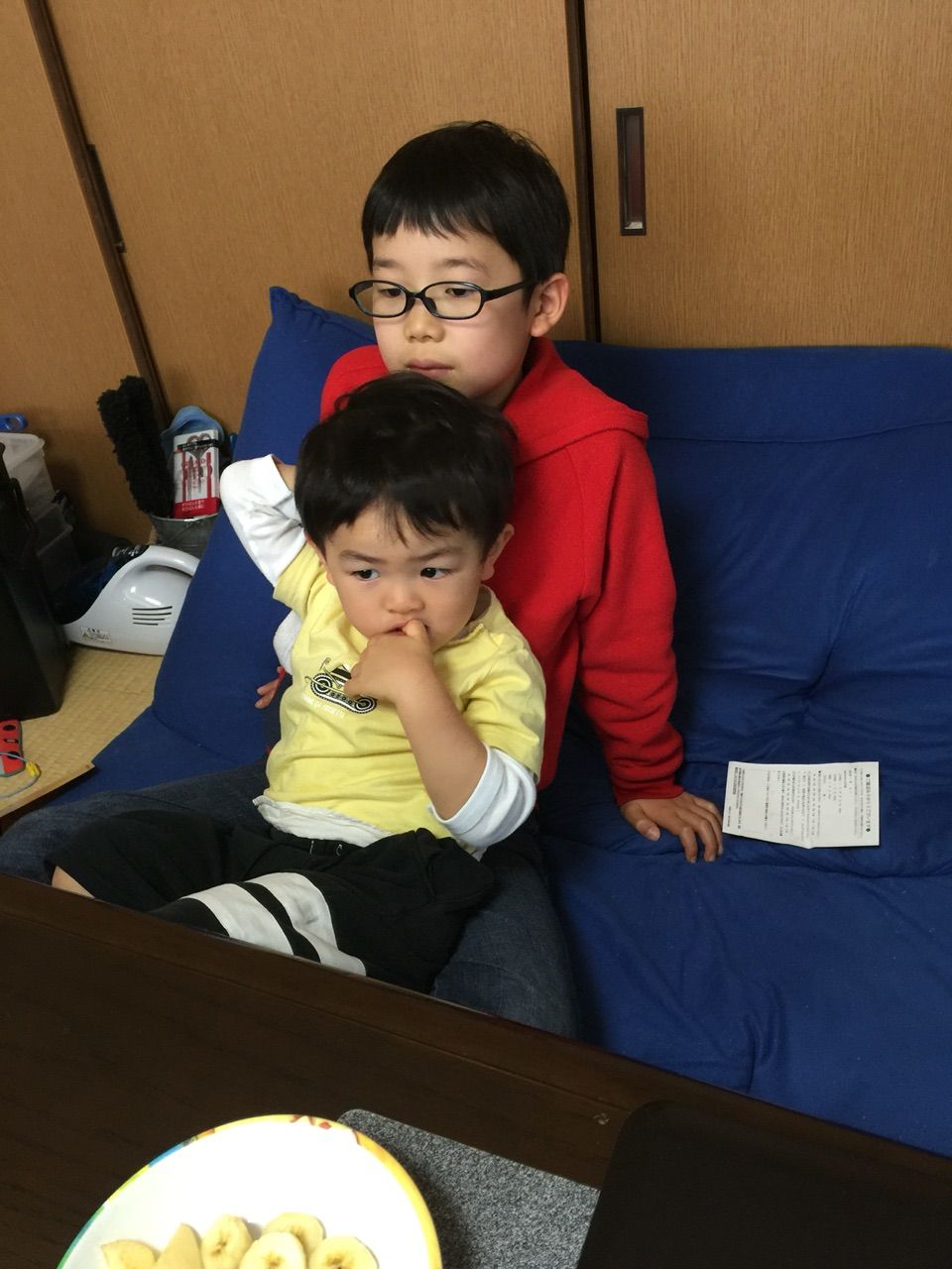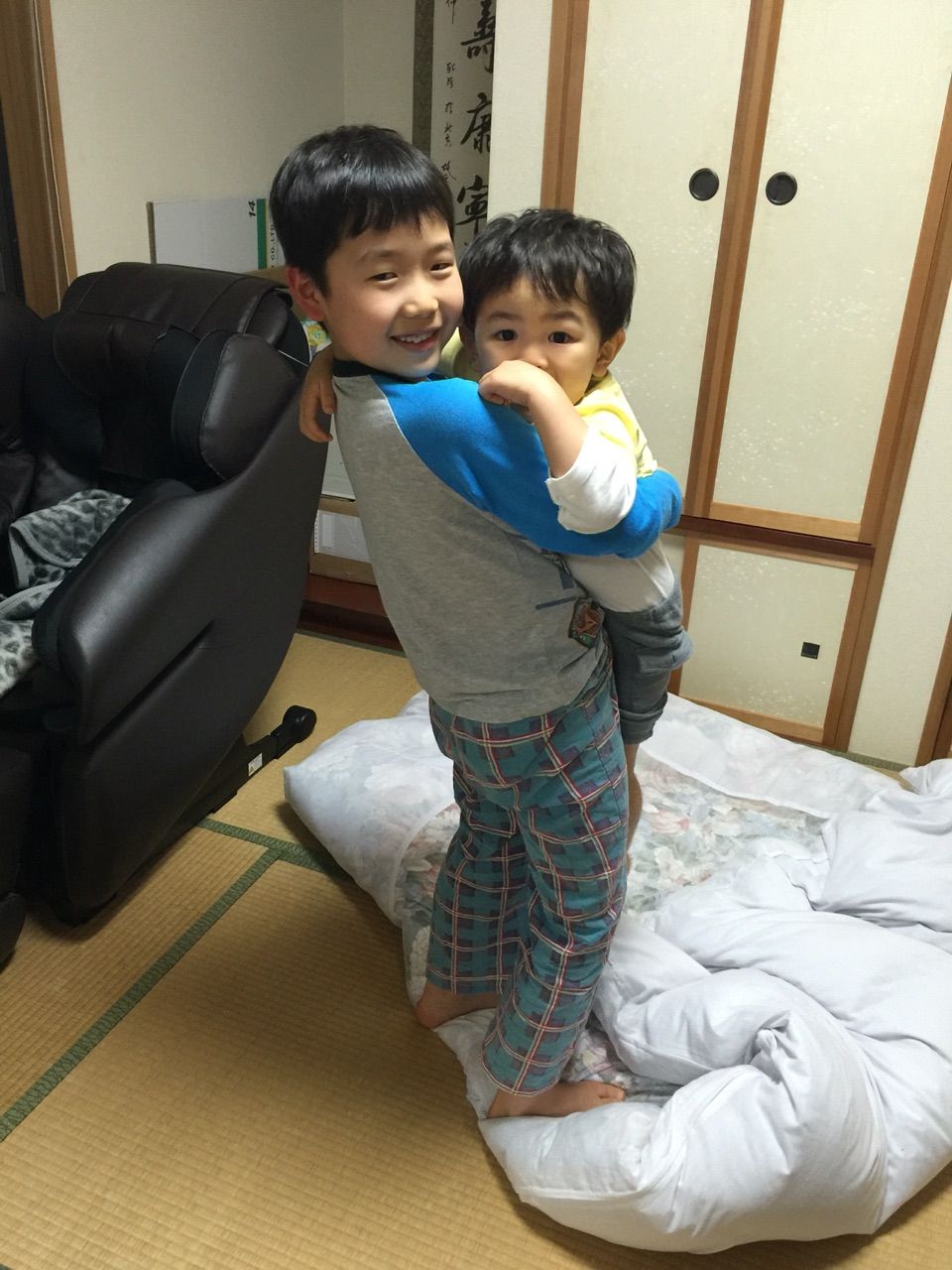 お兄ちゃんにピッタリくっついて甘えてました。